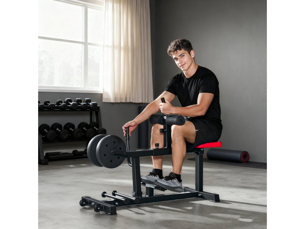 Snadná mobilita doma: Díky dvěma vestavěným kolečkům se posilovací stroj na nohy snadno přemisťuje, takže si můžete doma cvičit pohodlně a snadno a snadno se přizpůsobí.