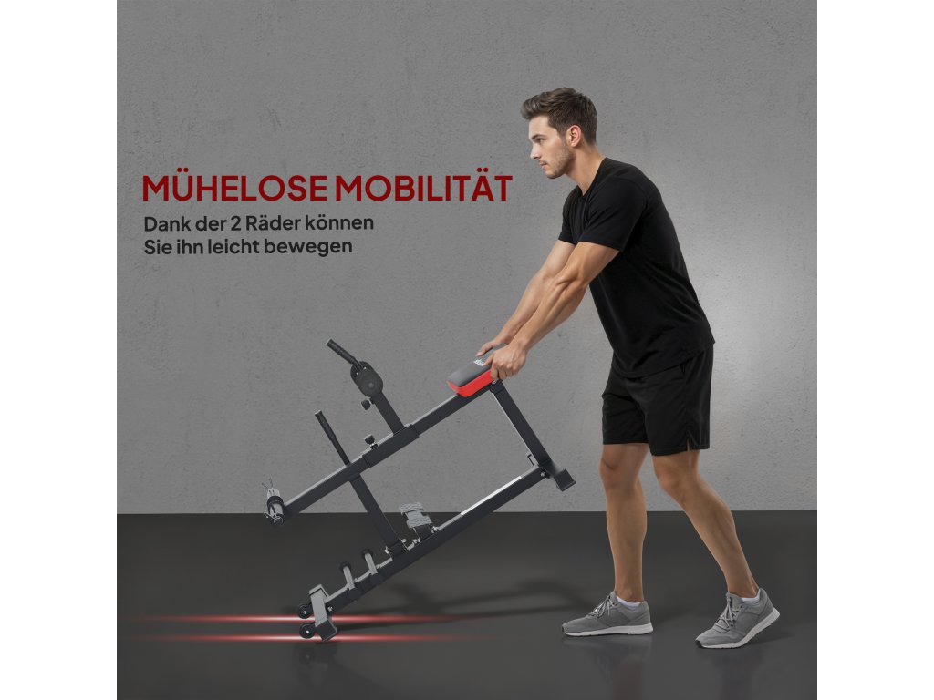 ✔ Stroj na protahování nohou má dvě transportní kolečka pro snadné přemisťování a pohodlné skladování doma.