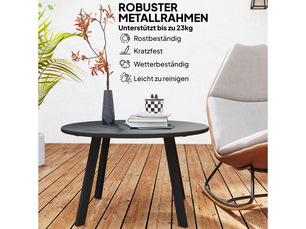 Odolná konstrukce: Tento konferenční stolek je vyroben z práškově lakovaného kovu, odolává každodennímu používání, je odolný proti poškrábání a korozi a unese až 23 kg, což z něj činí spolehlivý doplněk vašeho domu nebo zahrady.
