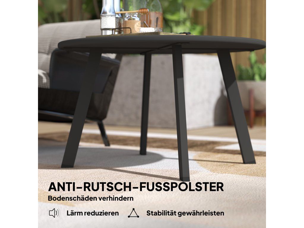 Stabilní a tichý: Protiskluzové nožičky tohoto malého konferenčního stolku chrání vaše podlahy, snižují hluk a zajišťují stabilitu a ticho pro příjemnou atmosféru, ať už uvnitř nebo venku.