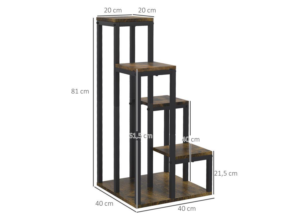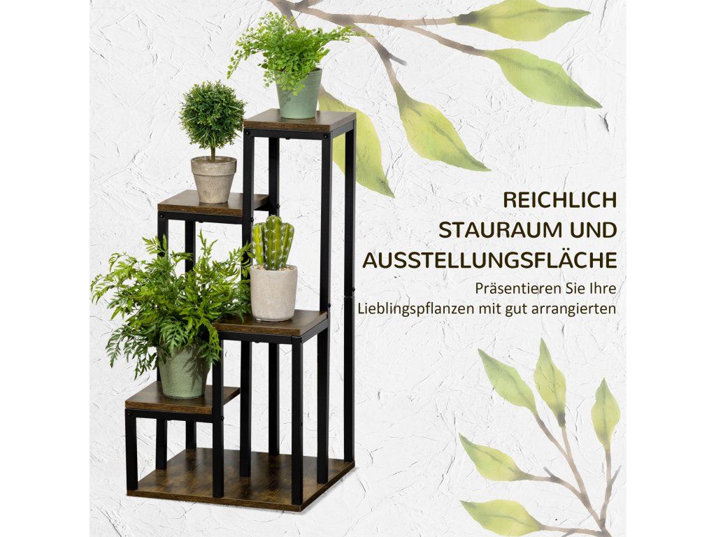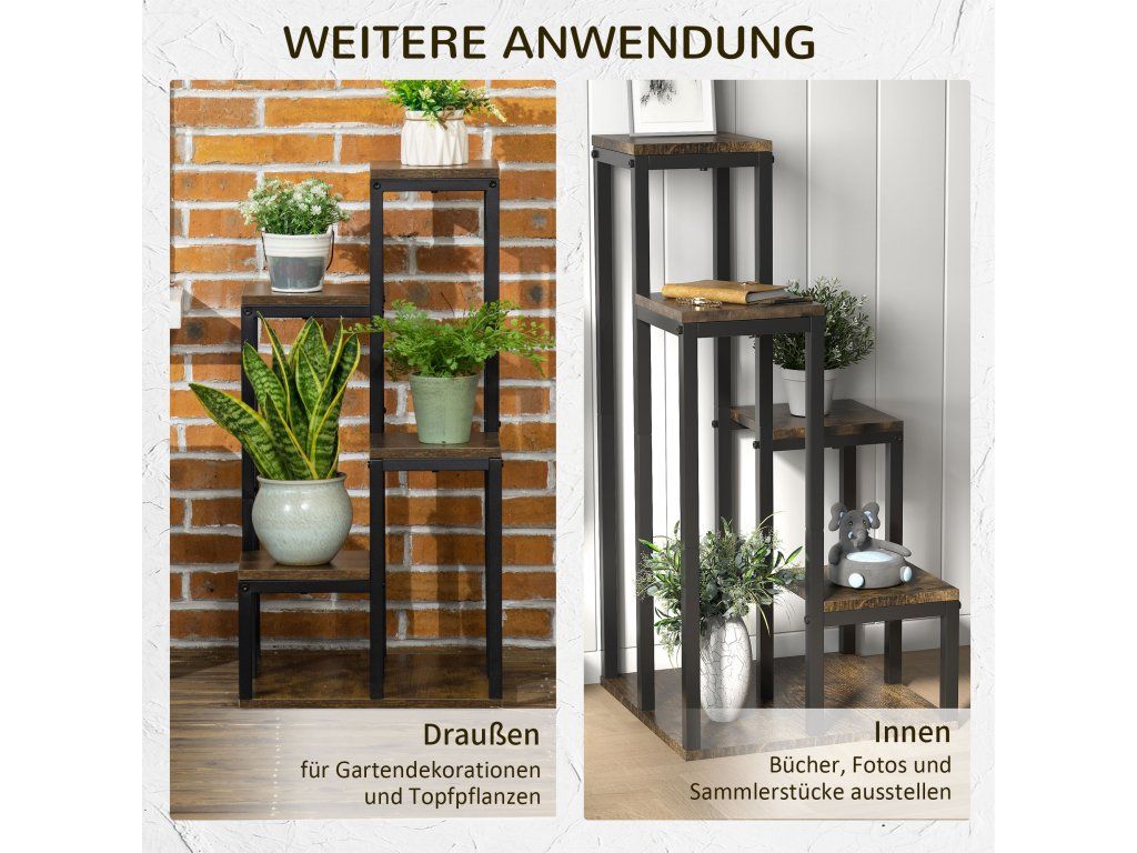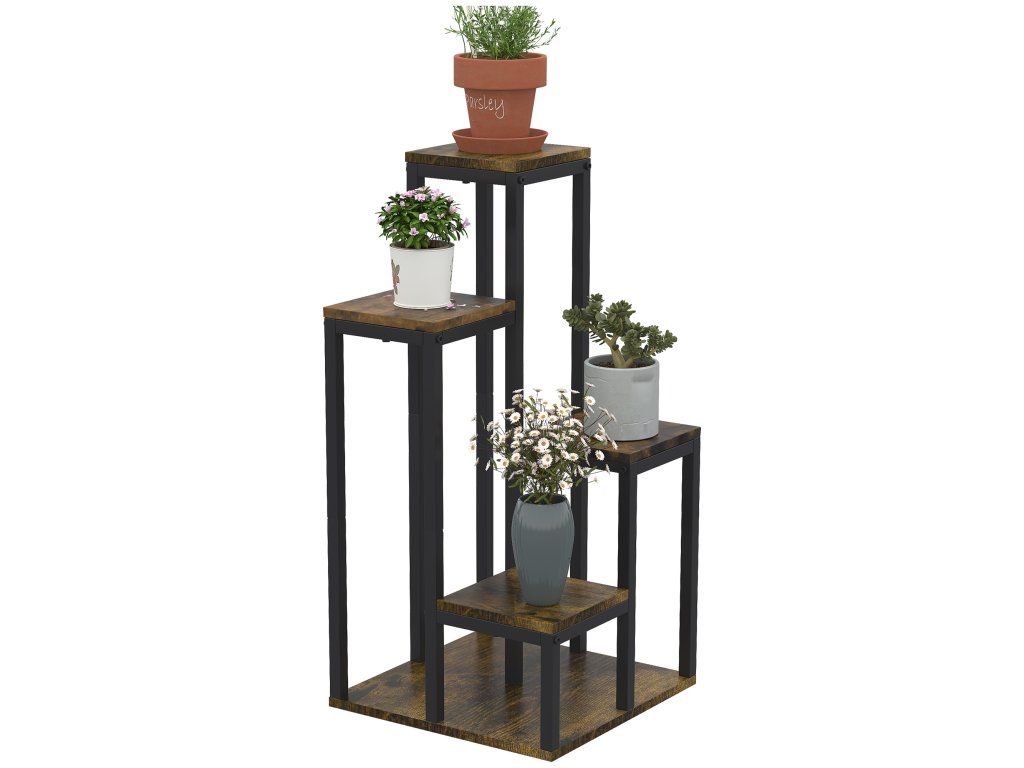 Praktické místo pro uložení a vystavení rostlin, květin, sběratelských předmětů a mnoho dalšího. Tento rustikální rohový stojan na květiny poskytuje úložný prostor pro váš domov. Ocelová konstrukce je robustní a má velkou základnu pro stabilitu. Stojan na květiny má čtyři úrovně, takže máte čtyři místa pro vystavení svých oblíbených předmětů.
