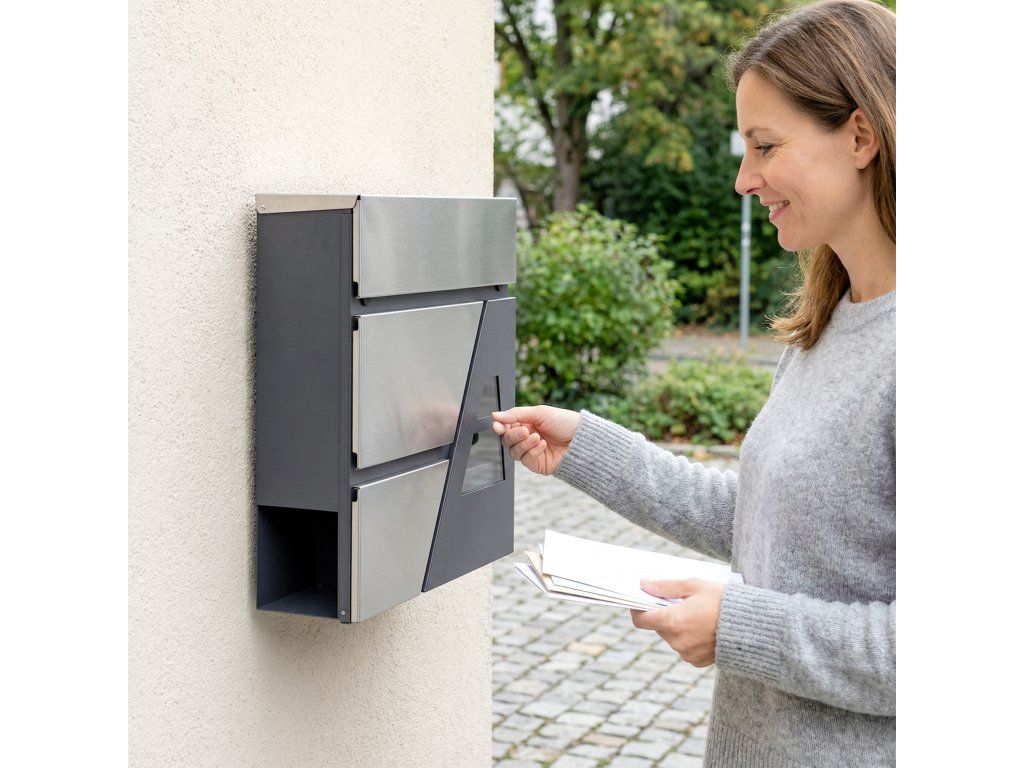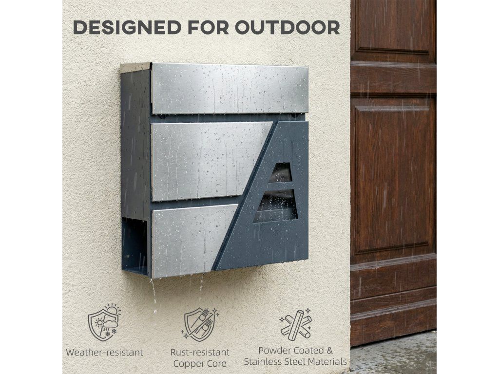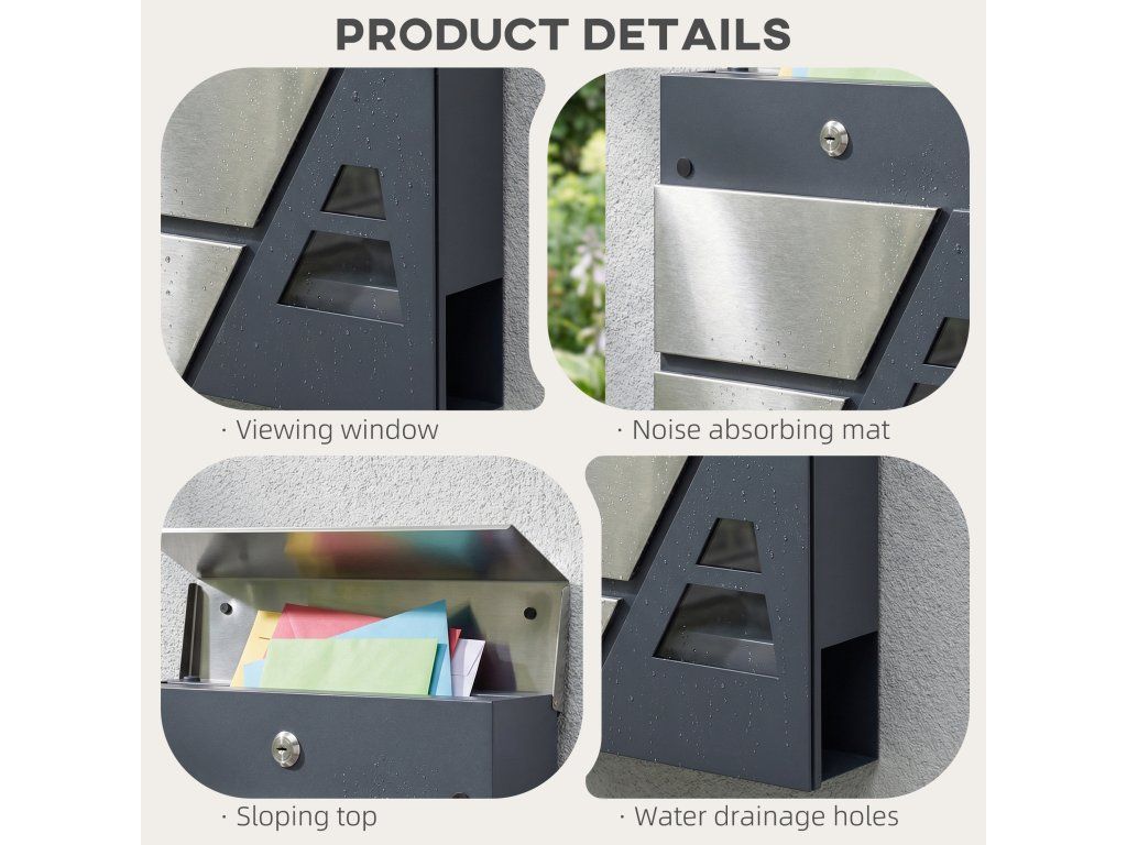 Moderní geometrický design: Tmavě šedé kovové tělo, klopa z nerezové oceli a geometrické okénko schránky umožňují rychlý přehled o vaší poště a dodávají vašemu domovu nebo kanceláři moderní nádech.