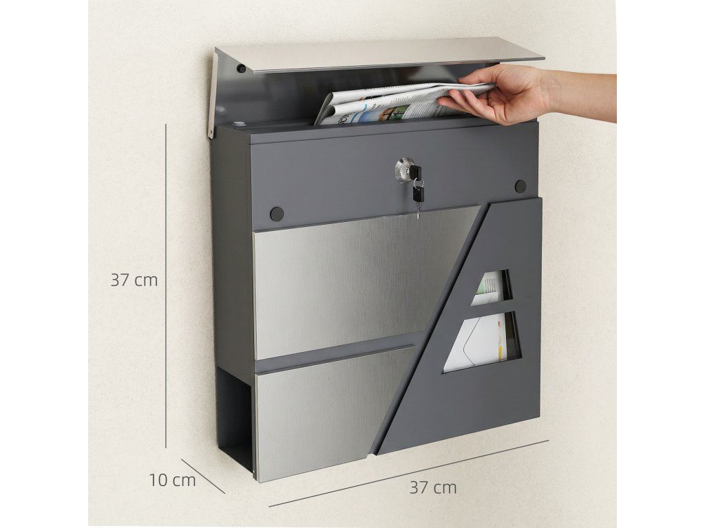 Dvojitý úložný prostor: Díky prostornému hlavnímu prostoru o objemu 13 litrů a samostatnému prostoru na noviny ve spodní části nabízí tato poštovní schránka praktické řešení pro uložení vašich dopisů, časopisů a novin uspořádaných a snadno dostupných.