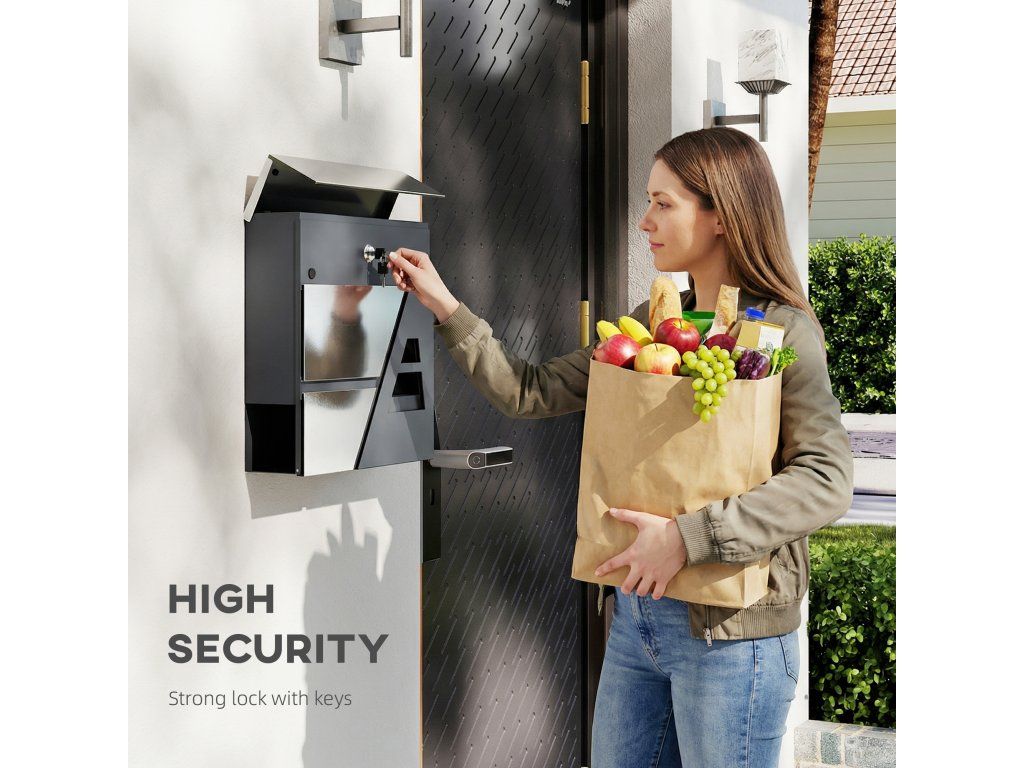 ✔ Nástěnná poštovní schránka je dodávána se zámkem a dvěma klíči pro vynikající zabezpečení.