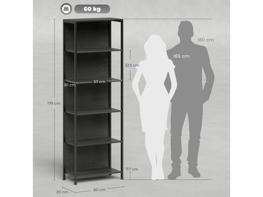 ✔ Pět otevřených polic poskytuje dostatek úložného prostoru pro knihy a dekorativní předměty.