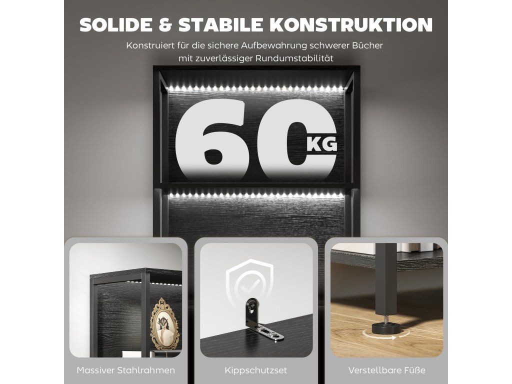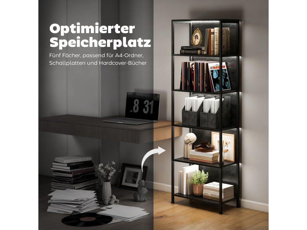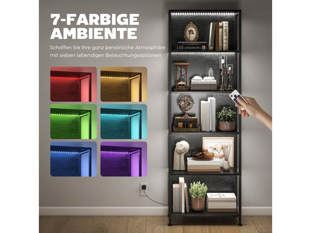 5patrová knihovna s LED osvětlením - 7 barev | černá