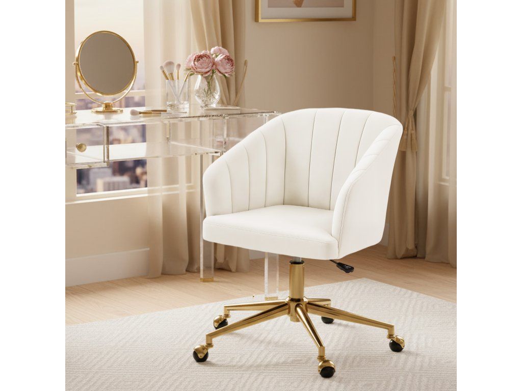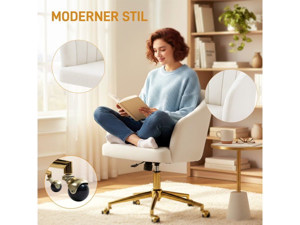 Moderní estetika: Sametová látka, precizní prošívání, zlatá základna a kuličková ložiska této kancelářské židle vytvářejí klidný a elegantní vzhled, který vylepší každou domácí kancelář nebo šatnu.