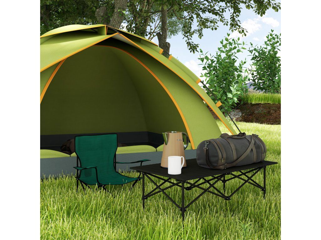 Hliníkový rám: Tento kempingový stůl je vyztužen dodatečným práškovým lakováním a zajišťuje stabilitu a odolnost. „X“ v horní části rámu poskytuje extra stabilitu.