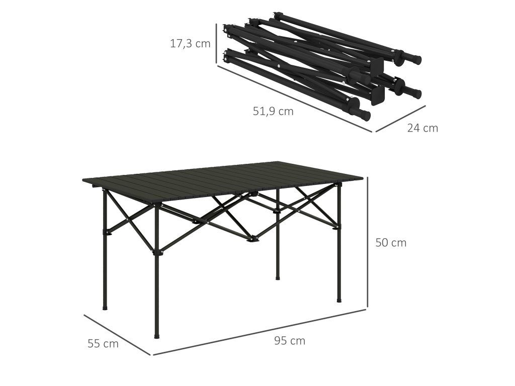 ✔ Práškově lakovaný hliník činí skládací stůl robustním a odolným.