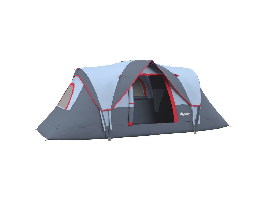 Tento tunelový stan pro 5-6 osob je ideální pro kempování, přenocování nebo túry. Prostorný stan nabízí dostatek místa pro páry i rodiny a vodotěsný kryt vás na cestách ochrání před nepřízní počasí a škodlivým UV zářením. Vysoce kvalitní materiály stanu jsou odolné proti korozi a trvanlivé. Součástí balení jsou kolíky a přepravní taška pro snadnou přepravu.