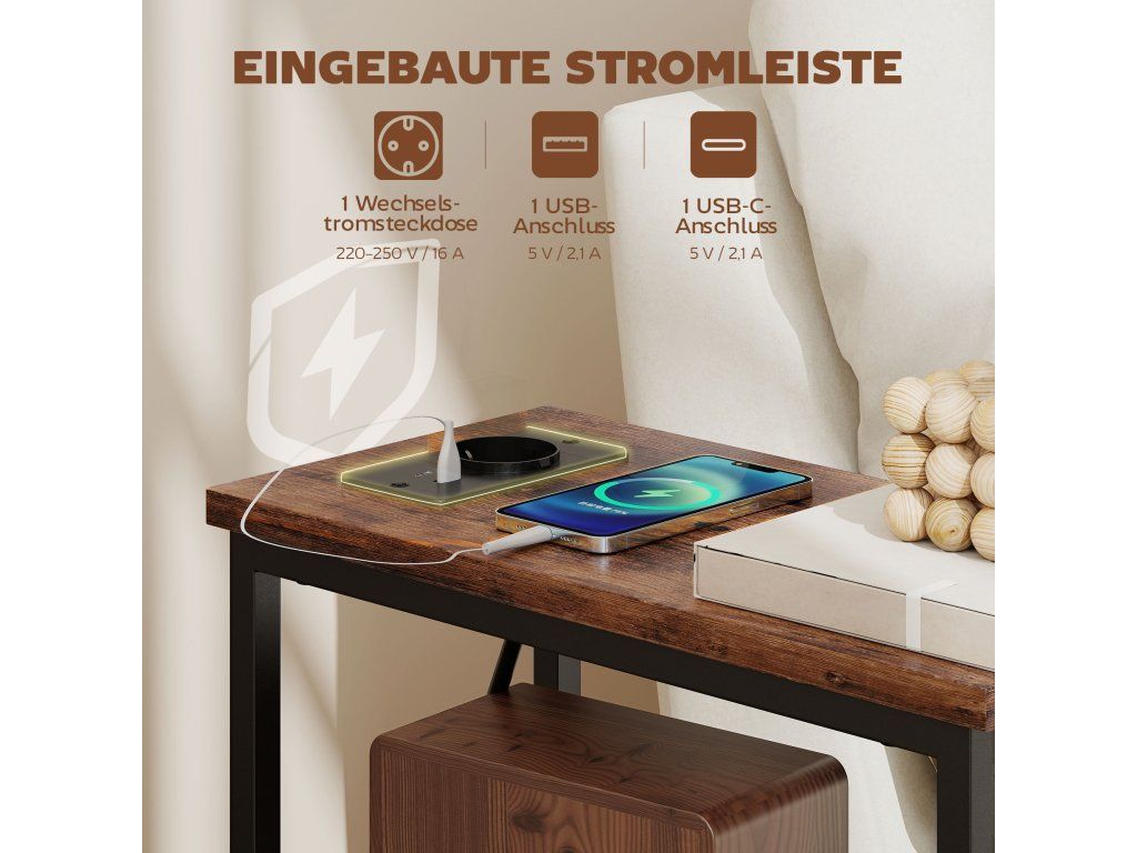 Nabíjecí stanice: Tento odkládací stolek je vybaven integrovaným prodlužovacím kabelem včetně síťové zásuvky, USB portu a USB-C portu a umožňuje vám nabíjet zařízení, jako jsou telefony, lampy nebo notebooky, přímo vedle postele nebo pohovky – ideální pro každodenní použití.