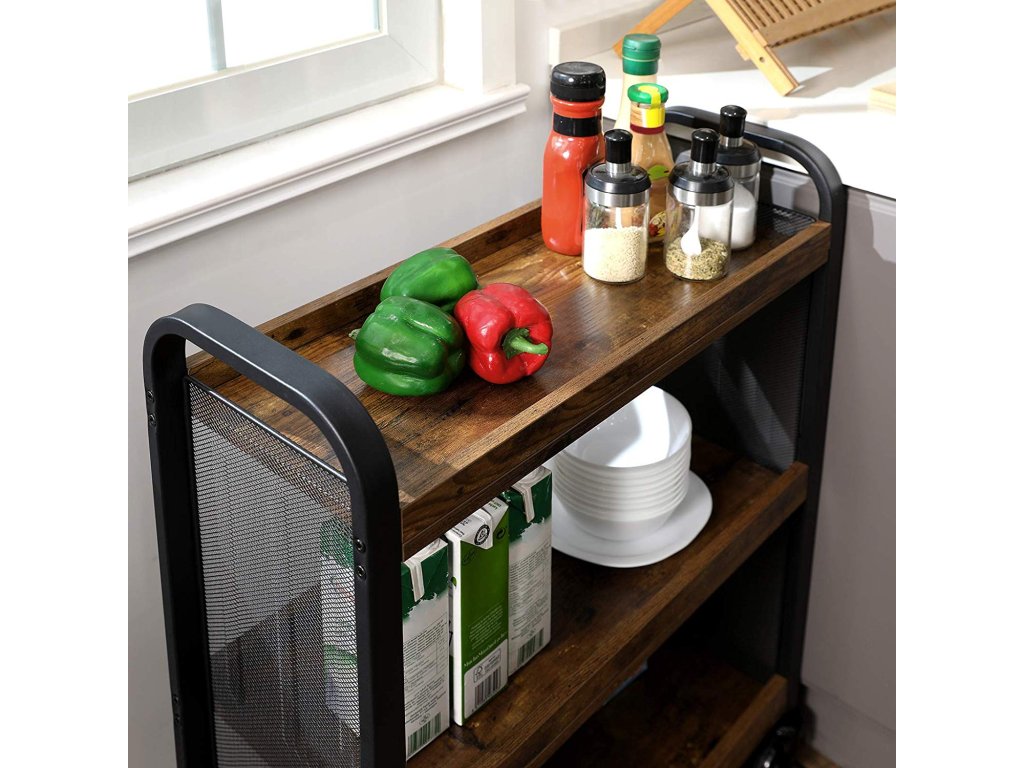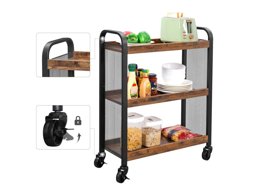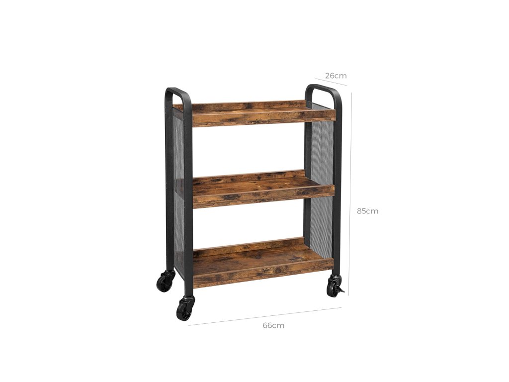 Pojízdný servírovací stolek v rustikálním hnědo-černém provedení, 66x26x85 cm.