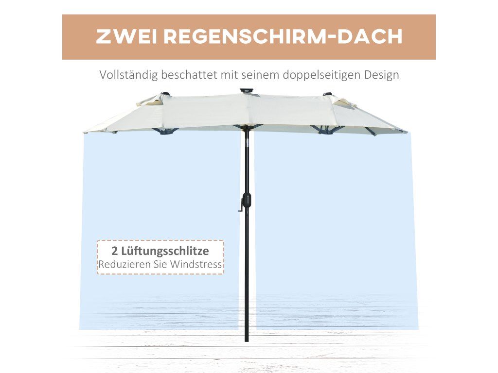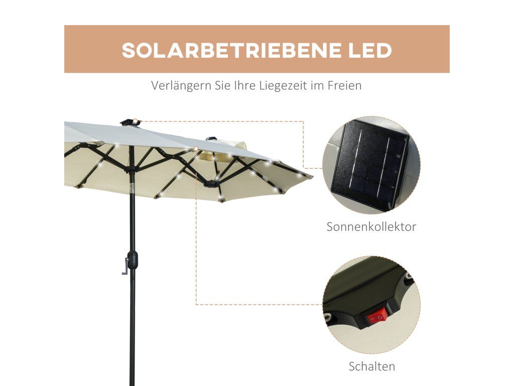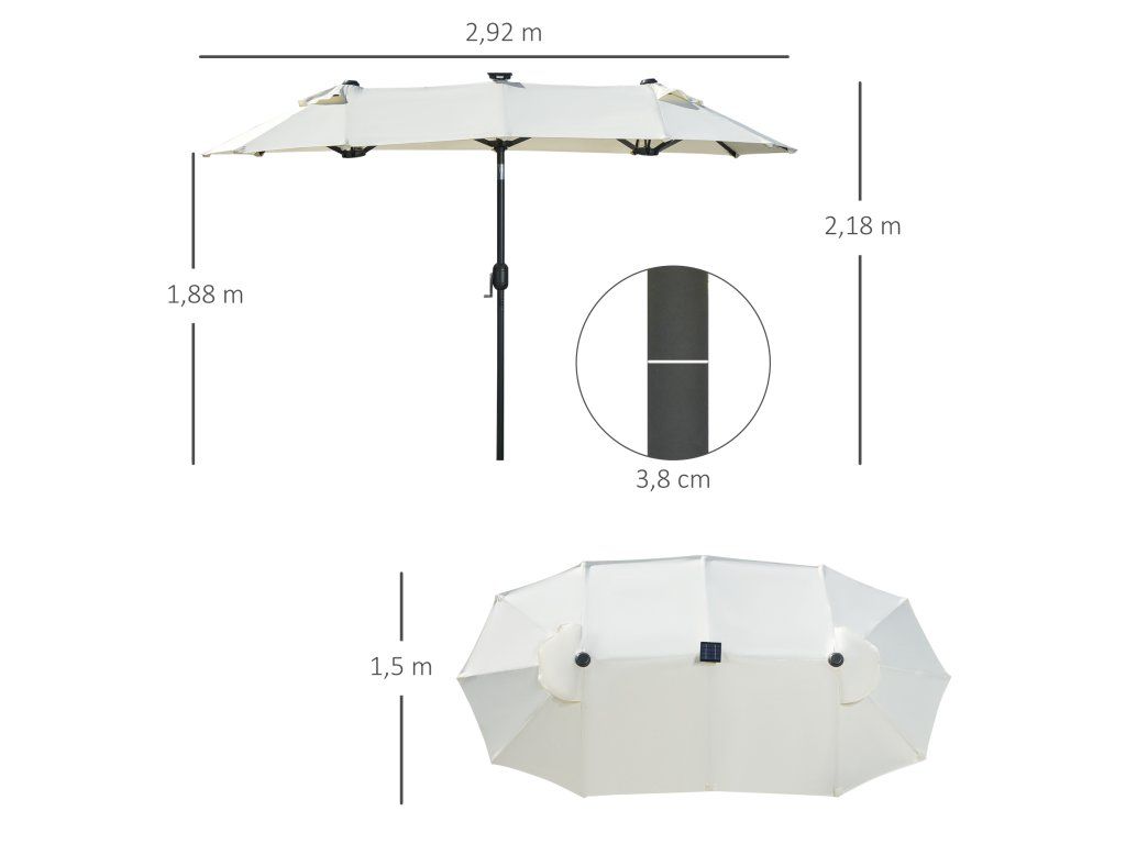 Dvojitý sklopný slunečník se solárním panelem 2,92 x 1,50 x 2,18 cm | béžový