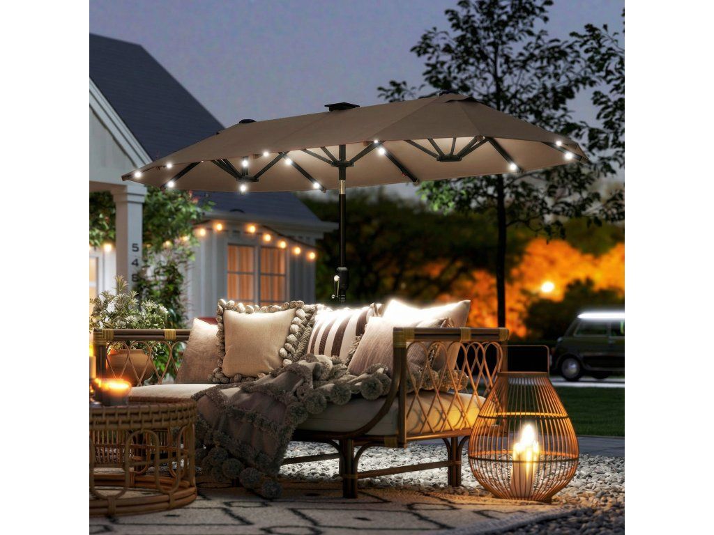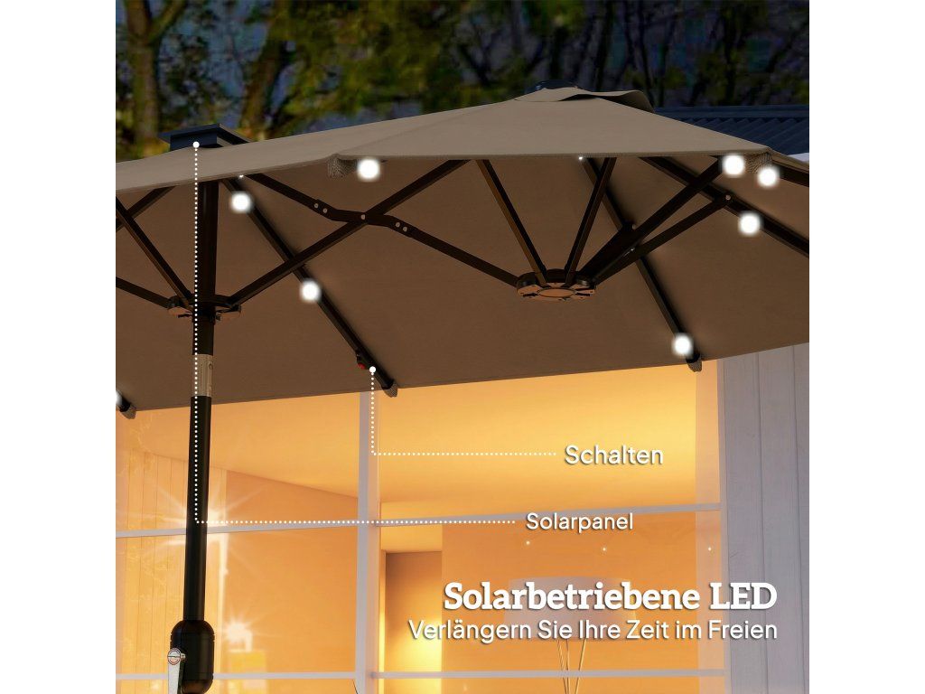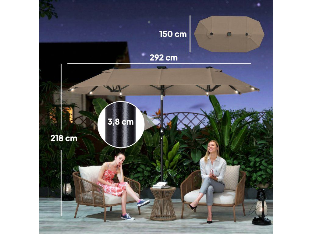 Dvojitý slunečník s LED osvětlením 292 x 150 cm | khaki