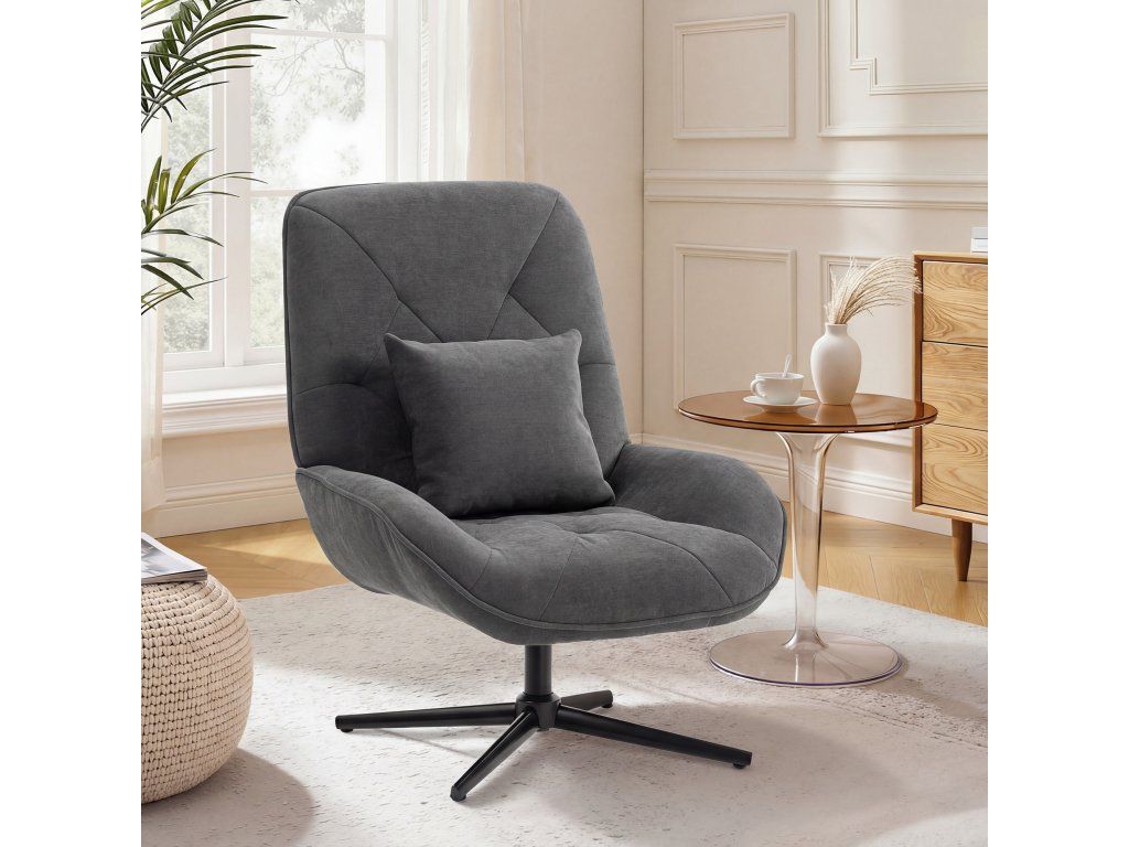 Zažijte maximální pohodlí s křeslem: 10cm pěnový sedák s taštičkovými pružinami poskytuje pohodlnou oporu, zatímco vysoké opěradlo obepíná vaše tělo. Měkká žinylková látka křesla dodá vašemu obývacímu pokoji nebo ložnici útulný nádech. Díky funkci otáčení o 360° se můžete pohybovat bez námahy a robustní kovová křížová základna zajišťuje spolehlivou stabilitu při relaxaci.