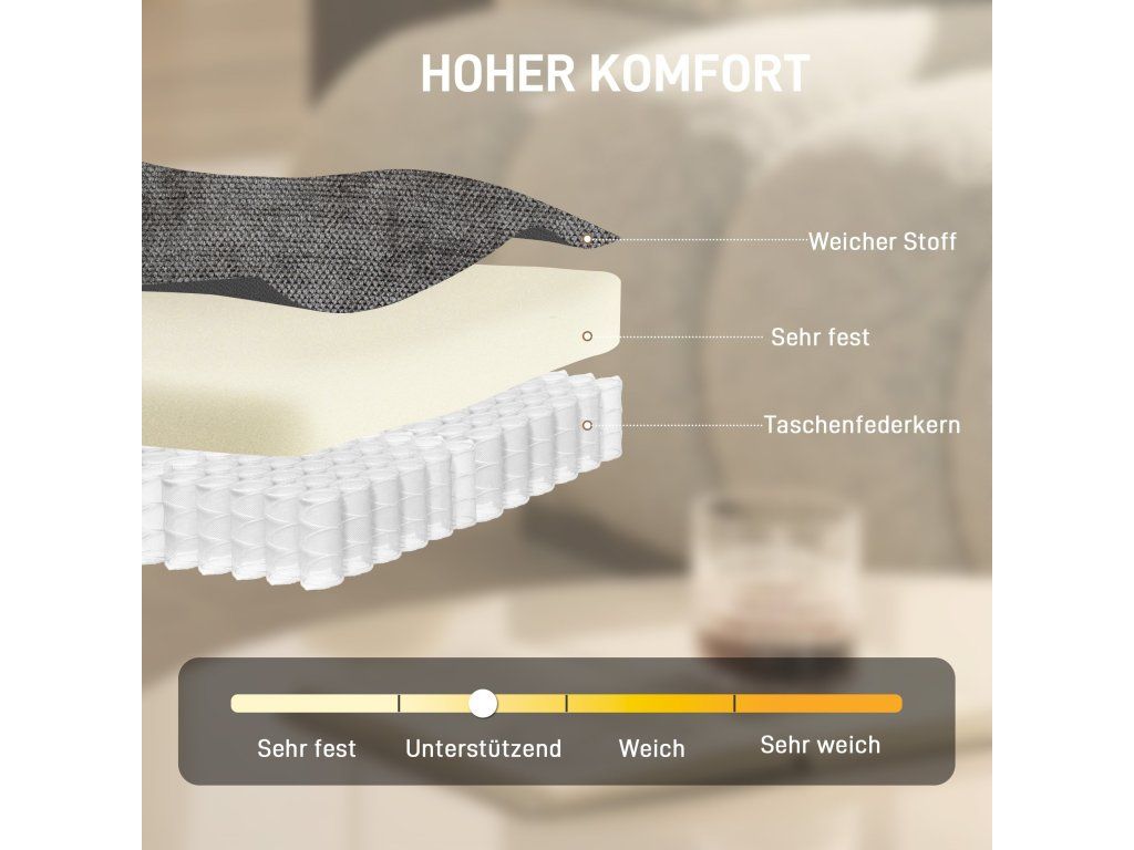 Pohodlné sezení: 10 cm pěnový sedák s taštičkovými pružinami, 70 cm vysoké opěradlo, 57 cm hluboký sedák a bederní polštář tohoto křesla do obývacího pokoje nabízejí optimální pohodlí, oporu a vylepšené držení těla pro relaxační chvíle.