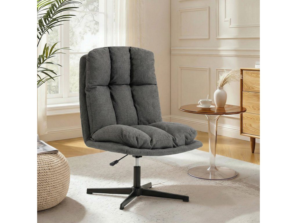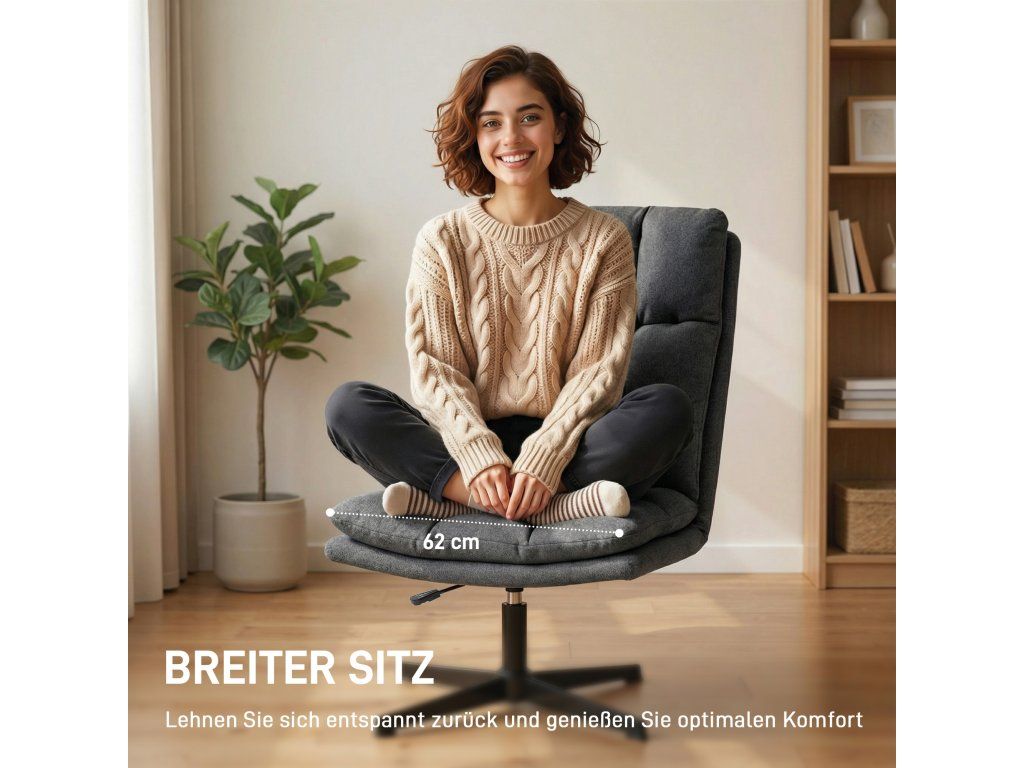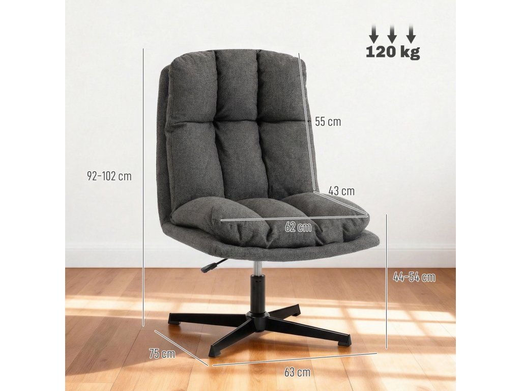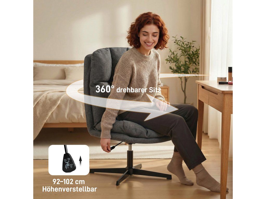 Užijte si pohodlí s křeslem! Díky šířce sedáku 62 cm a bezpodručkovému provedení si můžete pohodlně sednout se zkříženýma nohama, natáhnout se nebo změnit polohu. Díky nastavitelné výšce (92–102 cm) a otočení o 360° je křeslo ideální pro relaxaci, práci nebo čtení. Prodyšná látka otočného křesla s imitací lnu zajišťuje příjemné pohodlí – stylové a funkční.