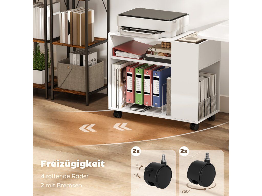Snadné přemisťování: Díky čtyřem hladce se pohybujícím kolečkům, z nichž dvě mají brzdy, lze skříň na tiskárnu bez námahy přemisťovat a flexibilně umístit ve vaší domácí kanceláři nebo obývacím pokoji.