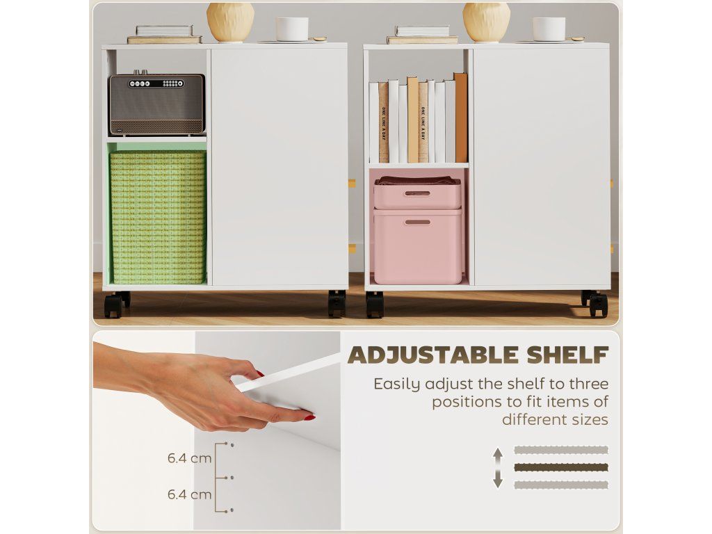 Přenosná, kamkoli ji potřebujete: Díky čtyřem hladce se pohybujícím kolečkům můžete tuto skříňku na tiskárnu snadno zasunout pod stůl nebo vedle svého pracovního prostoru. Dvě aretovatelná kolečka zajišťují, že během tisku nebo každodenního používání zůstane bezpečně na místě.