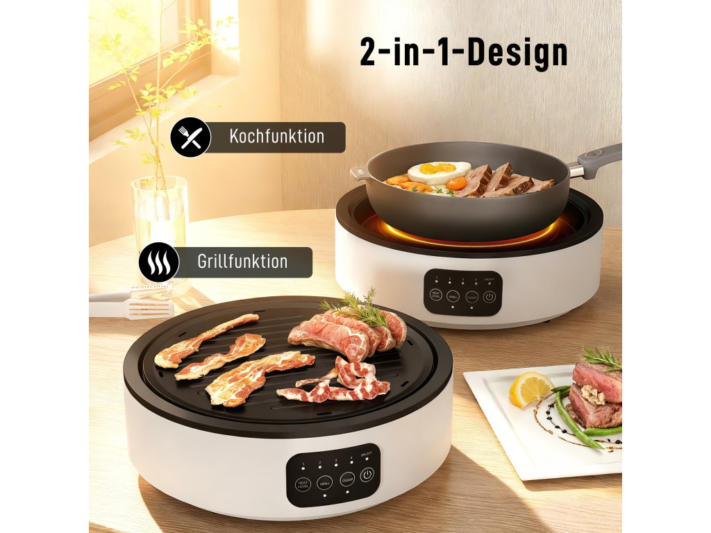 Snadné dotykové ovládání: Ovládání keramické varné desky je neuvěřitelně jednoduché. Intuitivní dotyková obrazovka umožňuje ovládat režim, výkon a teplotu (až 2000 W) jediným dotykem. Ať už grilujete nebo vaříte, přepínání režimů je snadné.