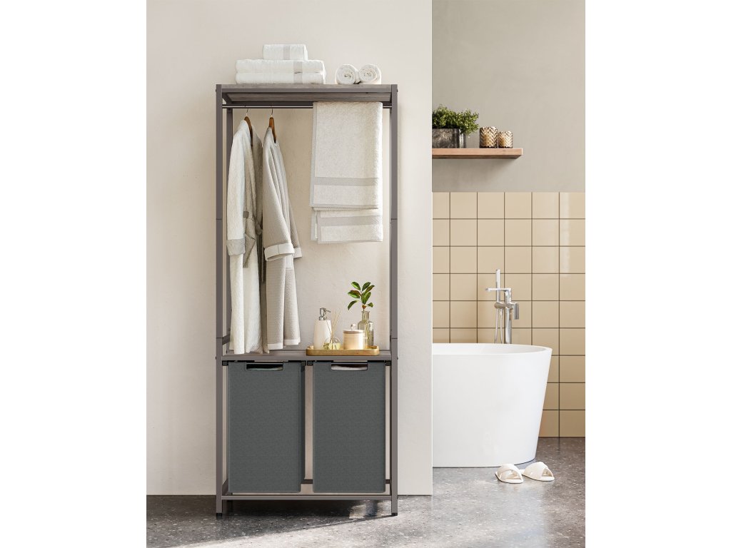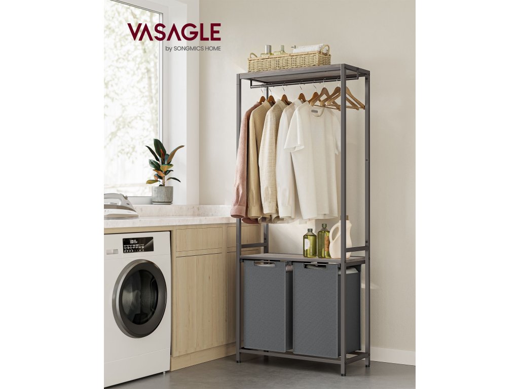 Dvoudílný koš na prádlo s vyjímatelnými a odnímatelnými vložkami, madlo na oblečení, 2 x 12,1 galonu, 28,7 x 13 x 69,7 palce, vřesově šedá a břidlicově šedá.