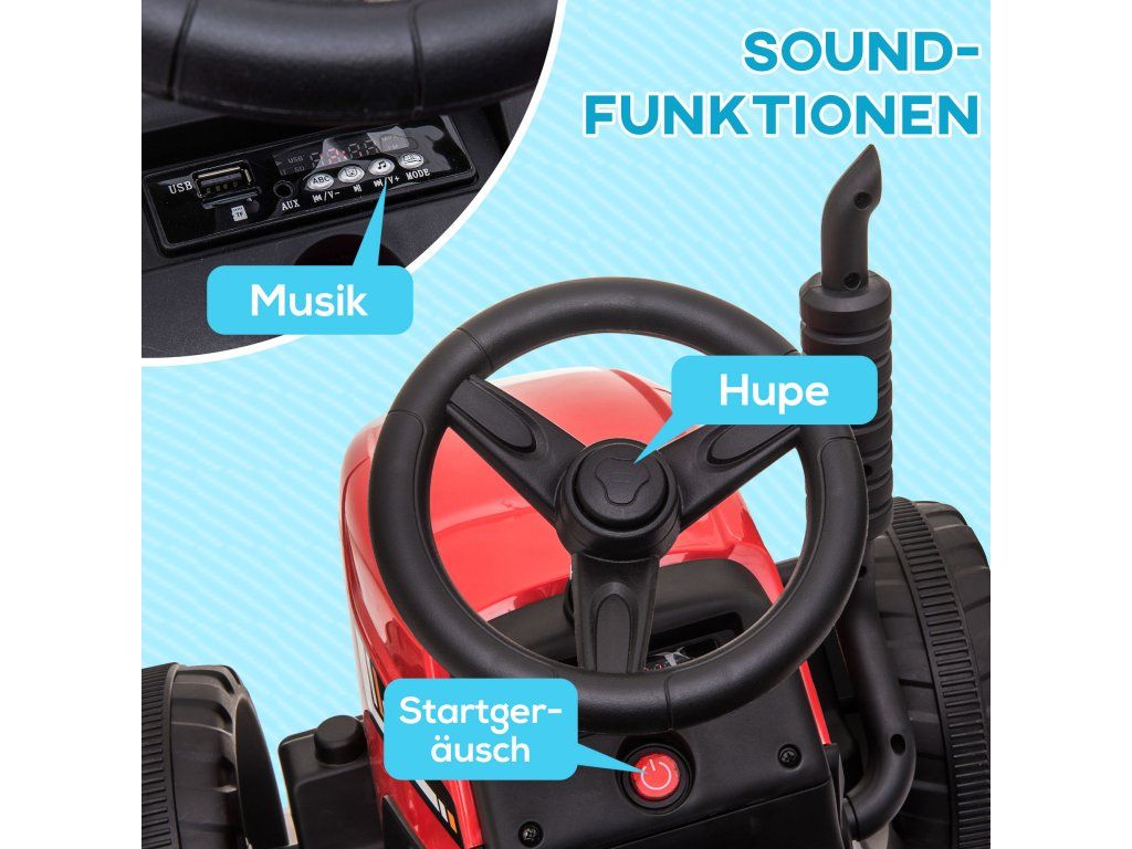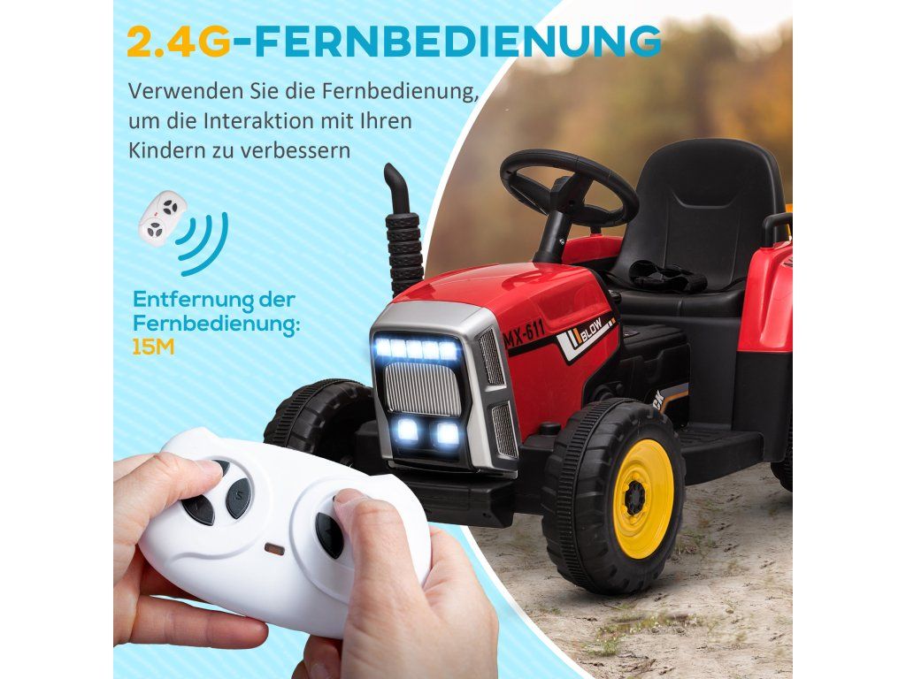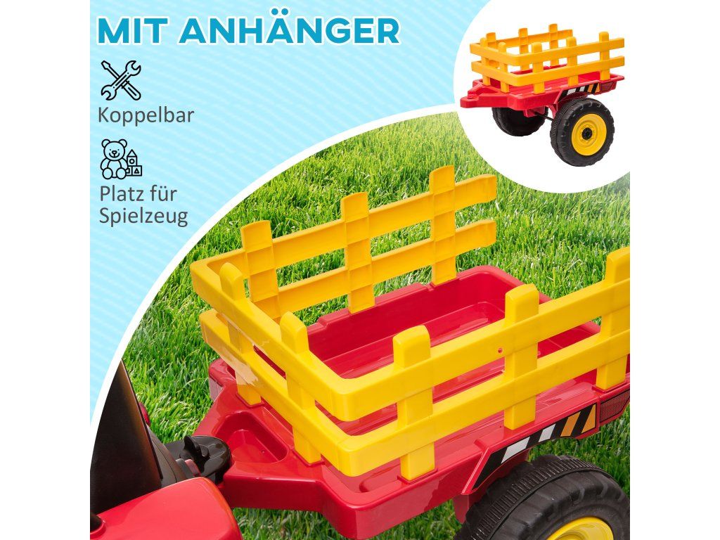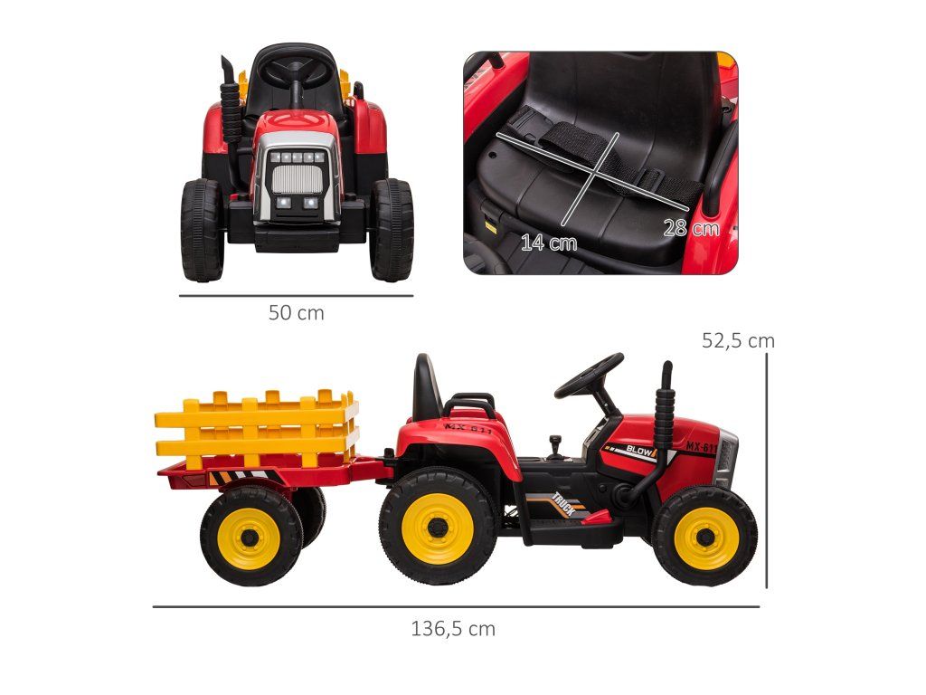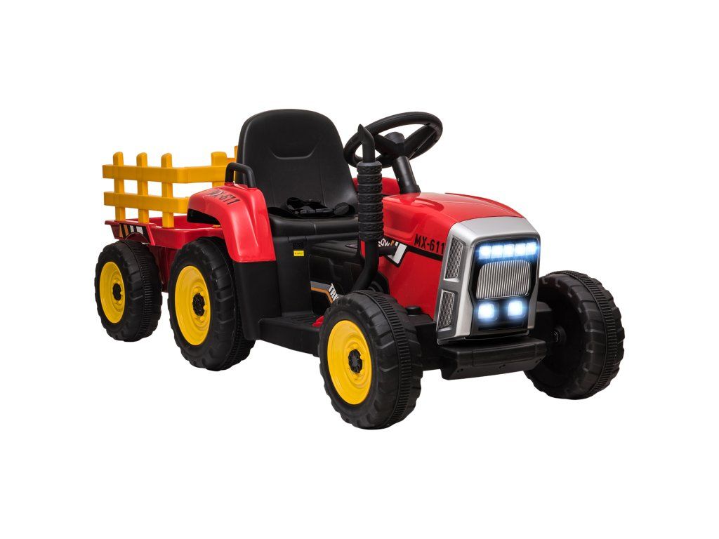 Bezpečnostní koncept: Tento traktor s přívěsem nabízí dětem bezpečný zážitek z jízdy díky širokým a přilnavým kolům. S maximální rychlostí 6 km/h, srovnatelnou s poklidným tempem dospělého, je kladen důraz na bezpečnost. Světlomety osvětlují silnici za soumraku a bezpečnostní pás poskytuje potřebnou oporu a zároveň povzbuzuje k zapínání.