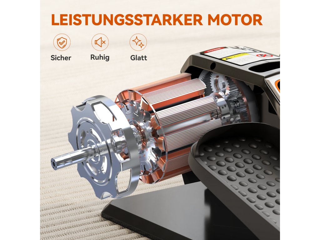 Tichý a stabilní trénink: Tento domácí eliptický trenažér umožňuje tichý trénink, poháněný tichým 60W motorem. Texturované, protiskluzové pedály zajišťují stabilní postoj za všech okolností – ideální do kanceláře, pro seniory nebo pro domácí rehabilitaci.