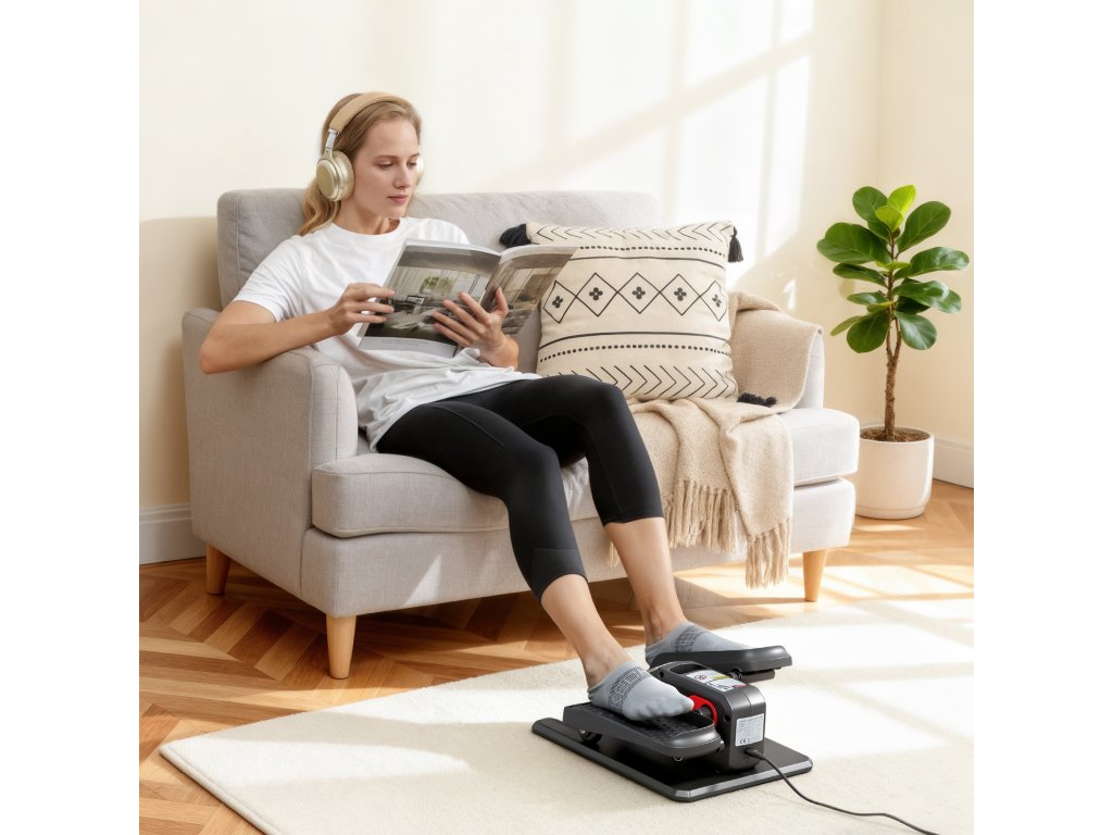Zůstaňte aktivní i vsedě s mini eliptickým trenažérem. Tento eliptický trenažér podporuje pohyb nohou a zlepšuje krevní oběh, aniž by zatěžoval klouby. Tichý motor mini eliptické trenažéru zajišťuje plynulý pohyb. Protiskluzové, texturované pedály umožňují šlapání vpřed i vzad pro komplexní procvičení nohou. Nabízí ruční a automatický režim a dálkové ovládání pro tichý trénink kdykoli.