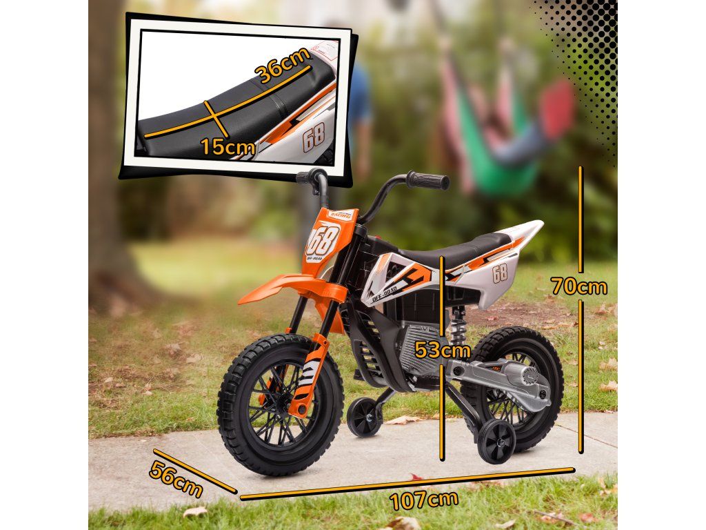 Kola tlumící nárazy: Zadní kola tohoto dětského motokrosového motocyklu tlumící nárazy zajišťují hladkou jízdu na různých površích, jako je cement a cihly.