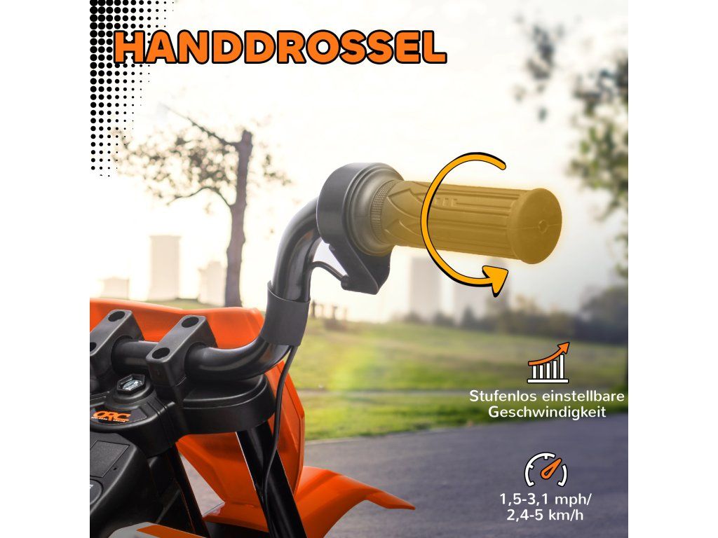 ✔ Ruční ovládání plynu na dětské jízdní hračce umožňuje nastavit rychlost od 2,4 do 5 km/h.
