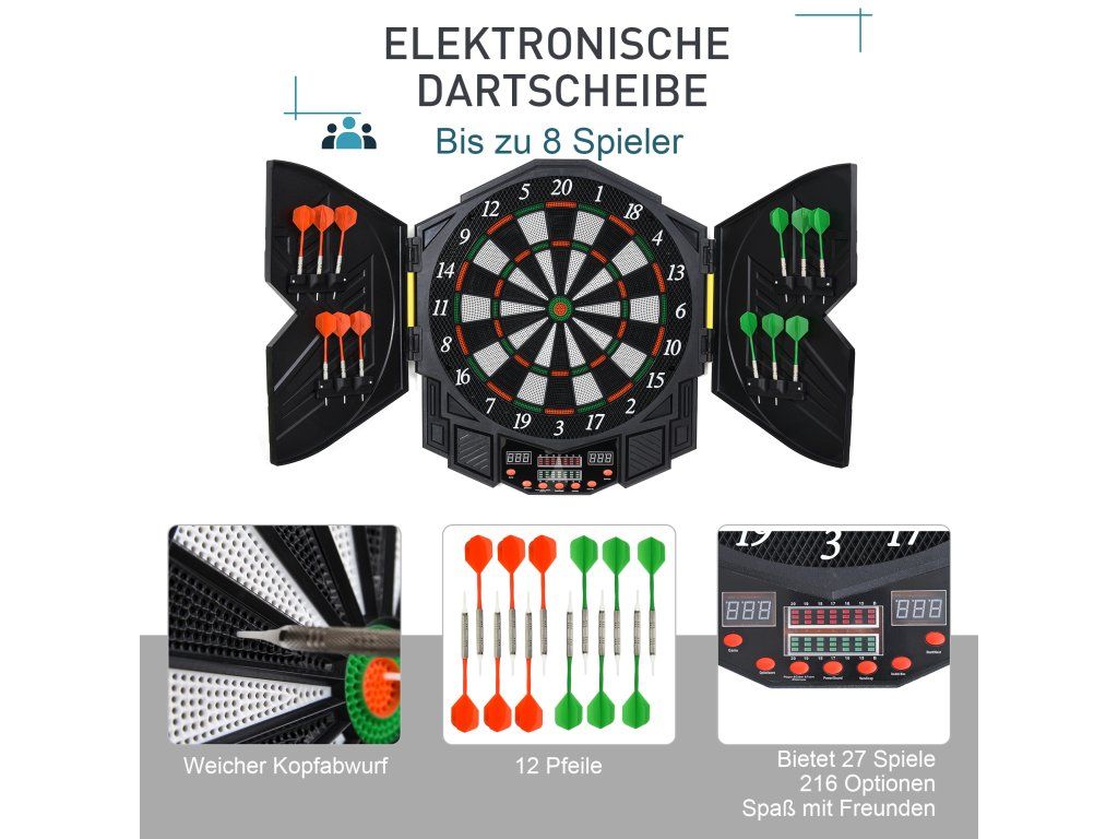 Rozmanitá zábava: Zažijte elektronické šipky s 27 různými variantami hry a užijte si celkem 216 herních variant – ideální pro každého fanouška šipek!