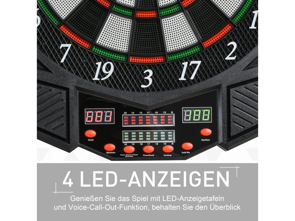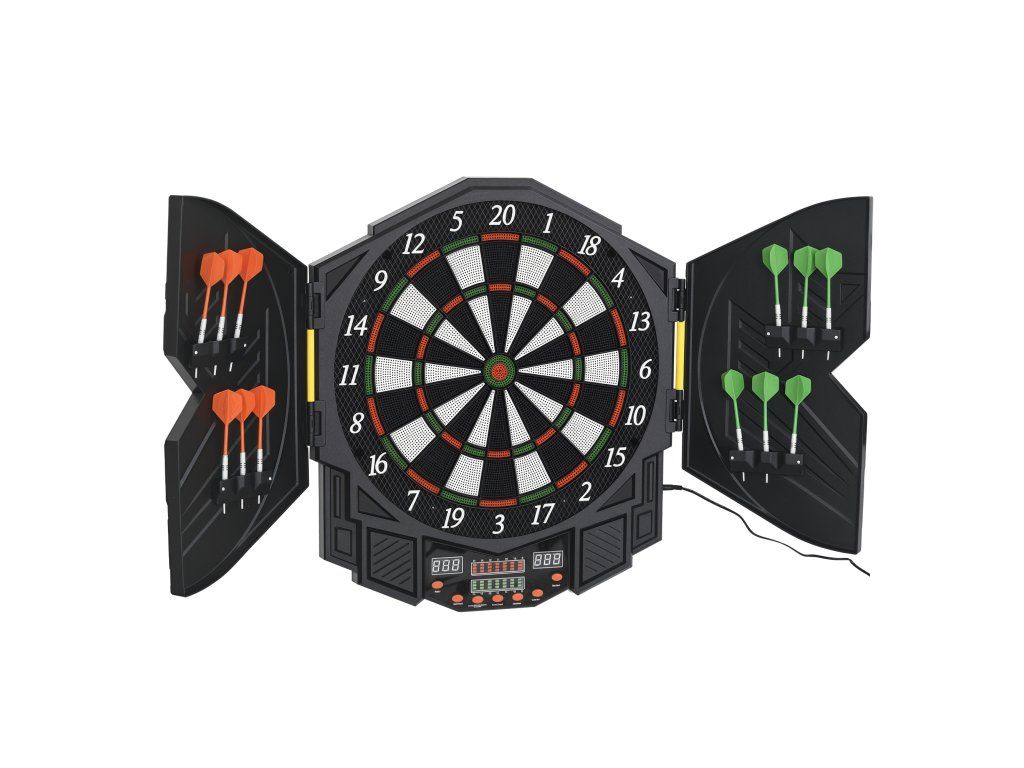 Hrajte šipky jako profesionálové doma! Zábava a vzrušení jsou s vaším elektronickým terčem zaručeny. Vyberte si z 27 her a 216 variant, včetně turnajového režimu. Interaktivní zvukové efekty a hlasové pokyny vás vždy informují o vašem skóre. Přineste si vzrušení ze šipek domů. Ideální na zahradu, do společenské místnosti nebo jako dárek. Terč až pro 8 hráčů!