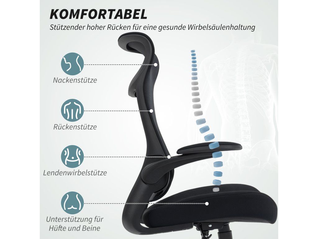 Ergonomická opora: Opěradlo ve tvaru S a integrovaná opěrka hlavy poskytují jemnou oporu pro vaši páteř, zatímco 11 cm silný sedák zajišťuje trvalé pohodlí po delší dobu v této ergonomické kancelářské židli, ať už pracujete z domova nebo v kanceláři.