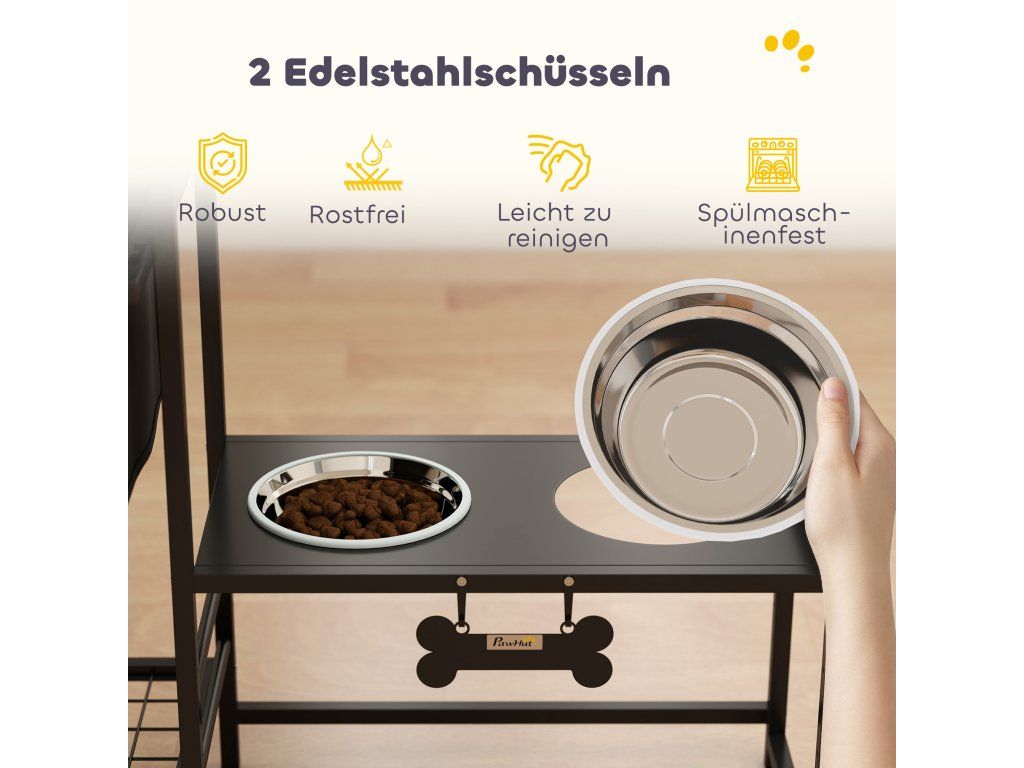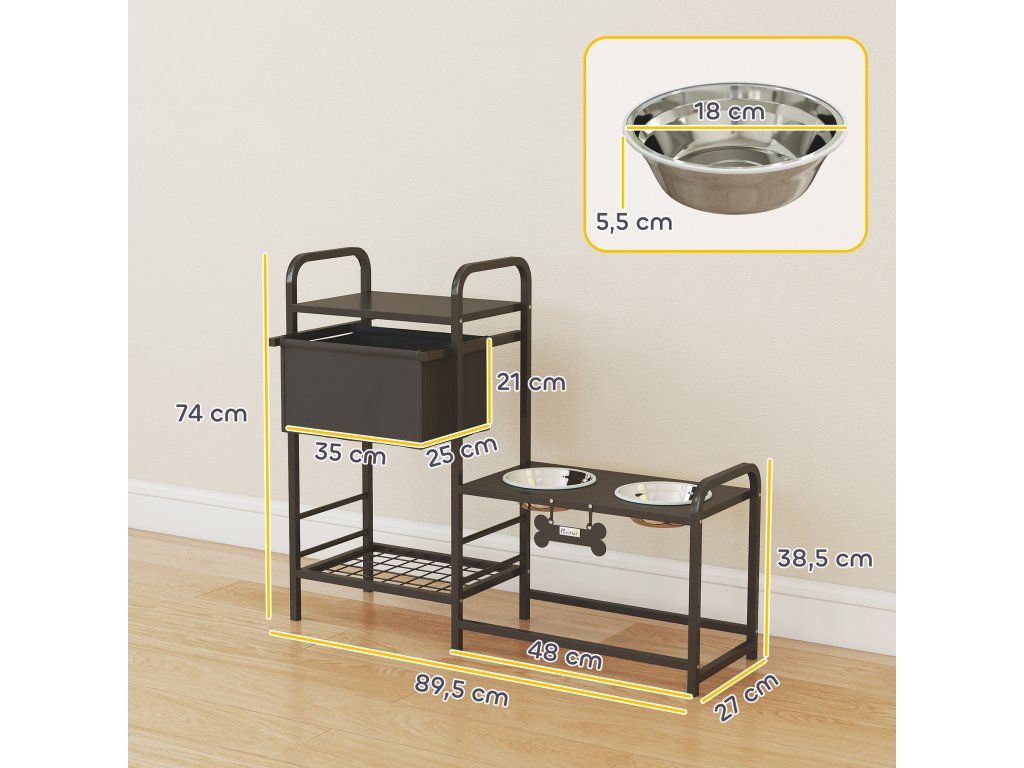 Psí krmná stanice způsobí revoluci ve vašem obytném prostoru. Nabízí dostatek prostoru pro psí krmivo, hračky a vodítka, slouží jako centrální bod a je vybavena výškově nastavitelným stojanem na misky. Je vybavena dvěma miskami z nerezové oceli a protiskluzovými kroužky, minimalizuje hluk během jídla a podporuje zdravé držení těla. Pro uklizenější domov a příjemnější stolování pro vašeho věrného společníka.