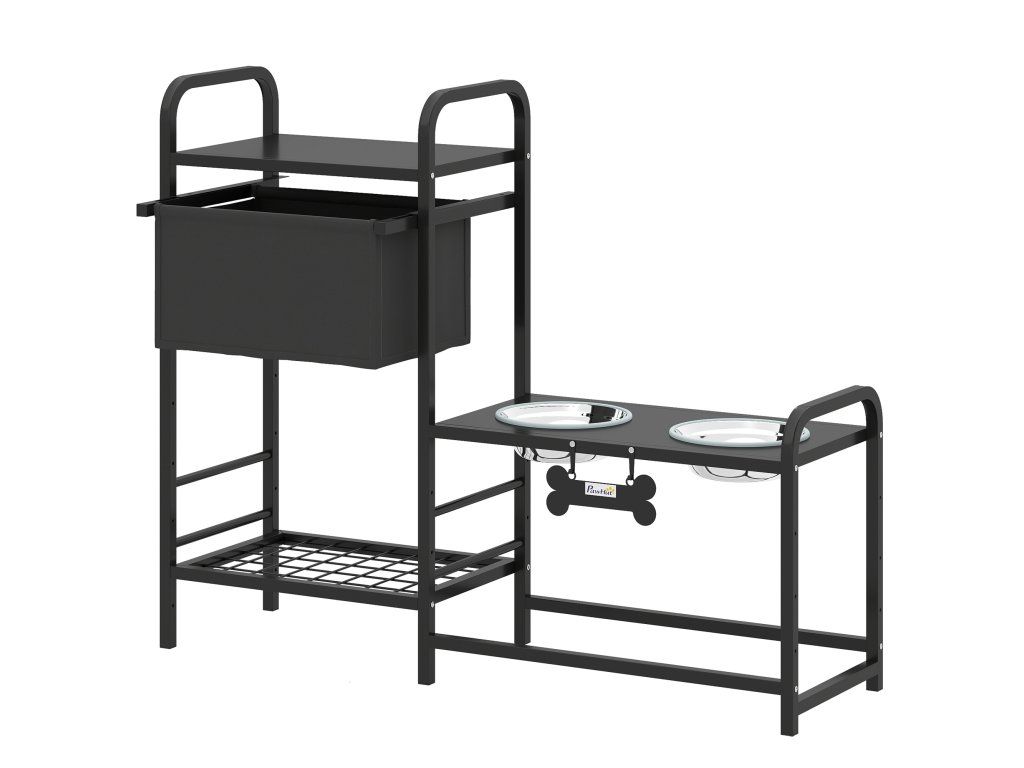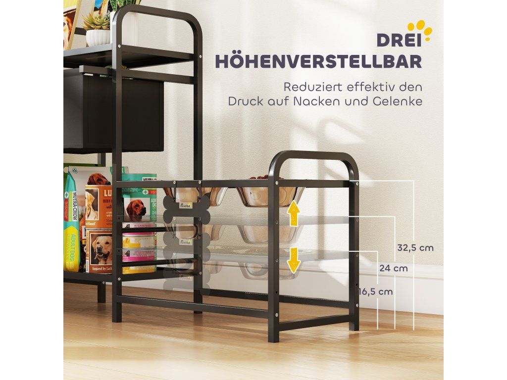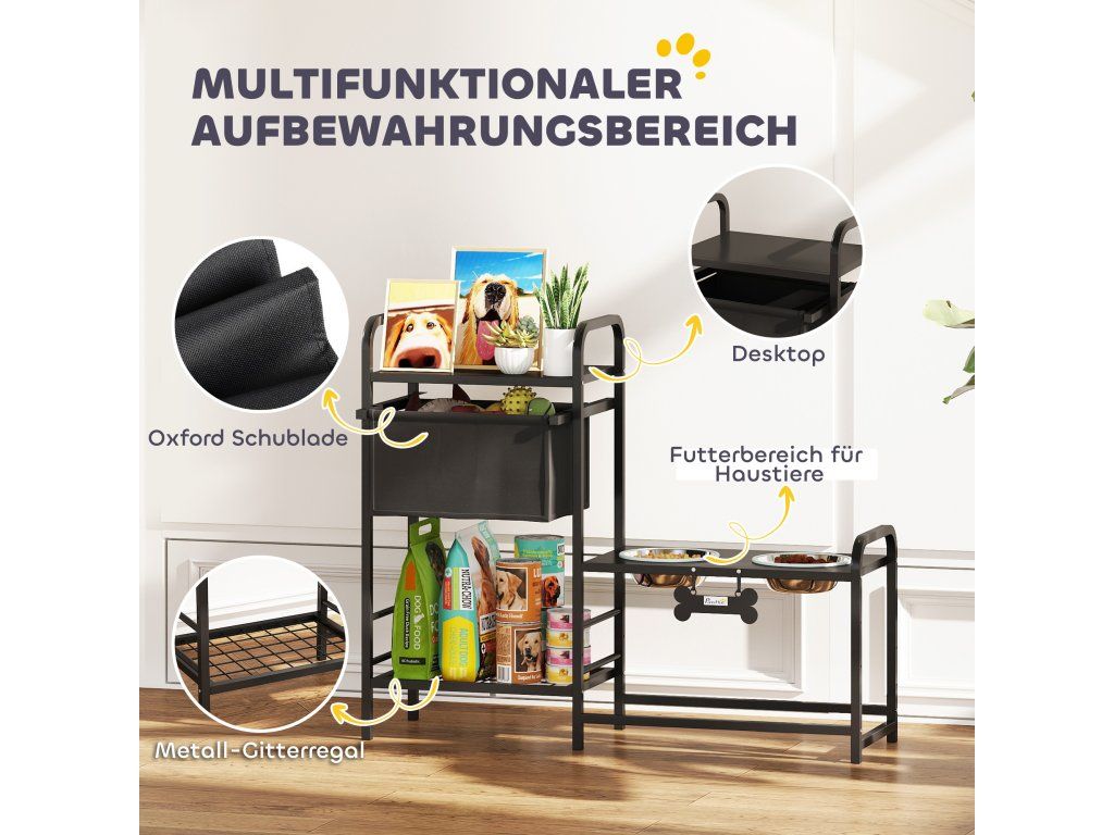 Krmící a úložné centrum vše v jednom: Díky krmné ploše, zásuvke Oxford a systému dvojitých polic udržuje tato vyvýšená miska pro psy vše od granulí až po vodítka uspořádané a uklizené.