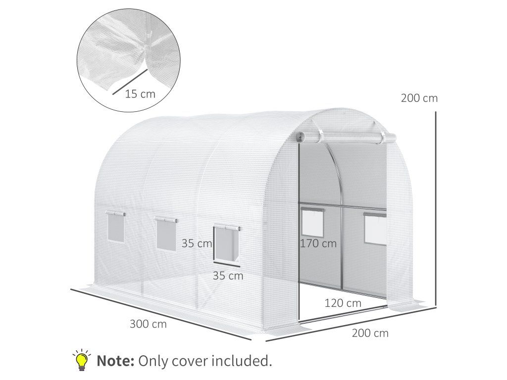✔ Poznámka: Součástí balení je pouze kryt, bez rámu! Tento produkt je určen jako náhradní kryt pro stávající, kompatibilní skleník.
