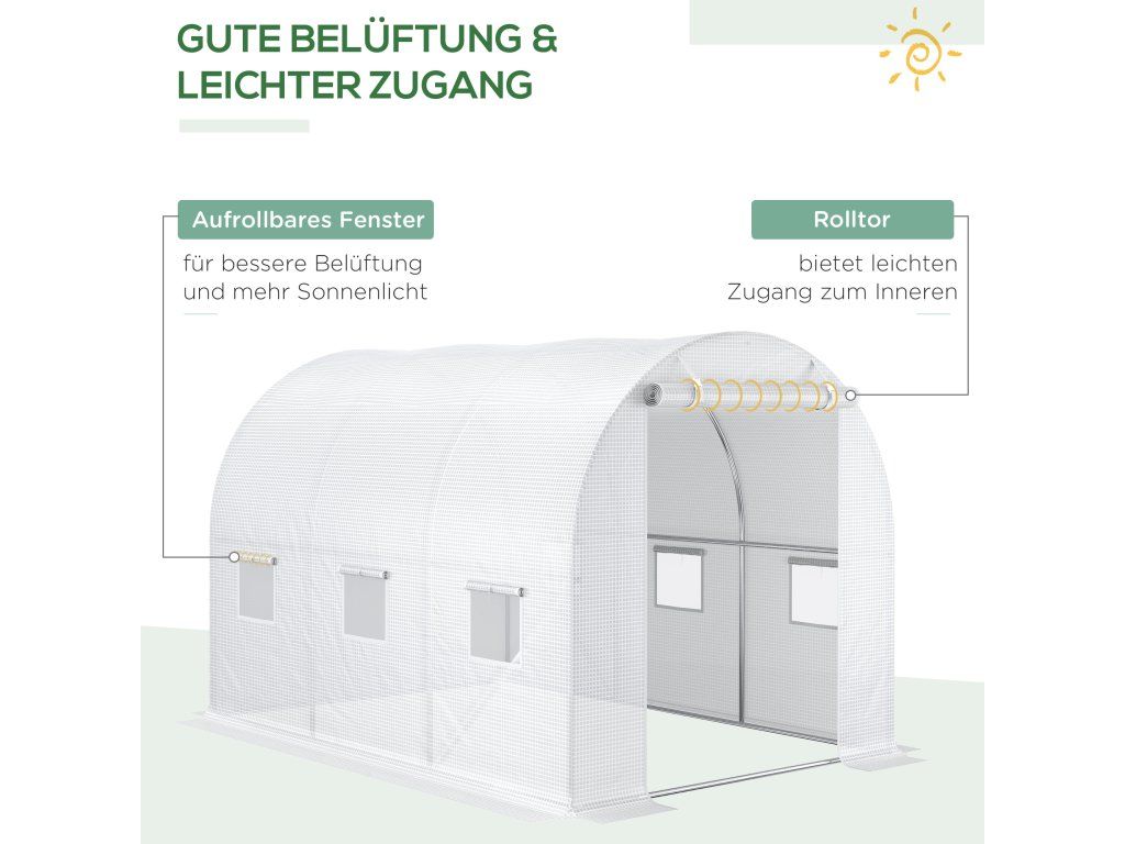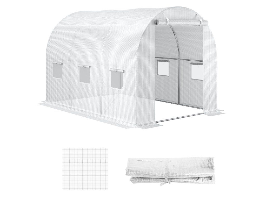 Odolný plastový kryt: Robustní kryt na skleník je prodyšný, odolný vůči UV záření a roztržení a poskytuje dlouhodobou ochranu vašich rostlin před deštěm, větrem a sněhem. Snadné připevnění k rámu pomocí přiložených suchých zipů.