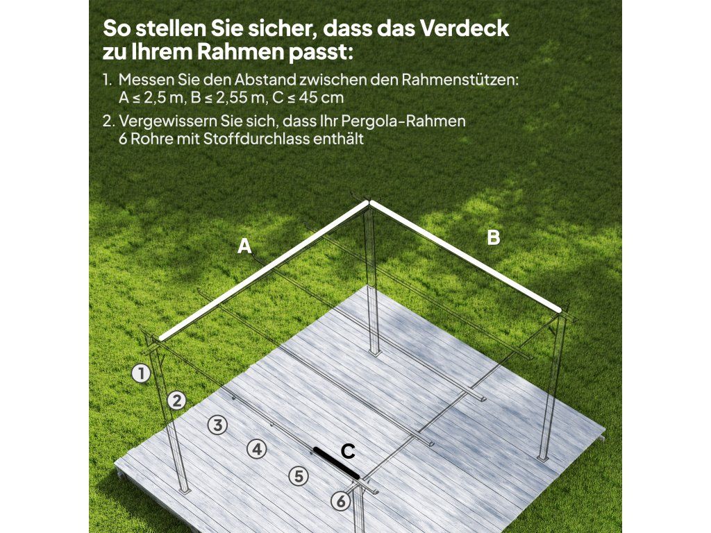 ✔ Tato stříška na pergolu má kapsy pouze pro šest tyčí.
