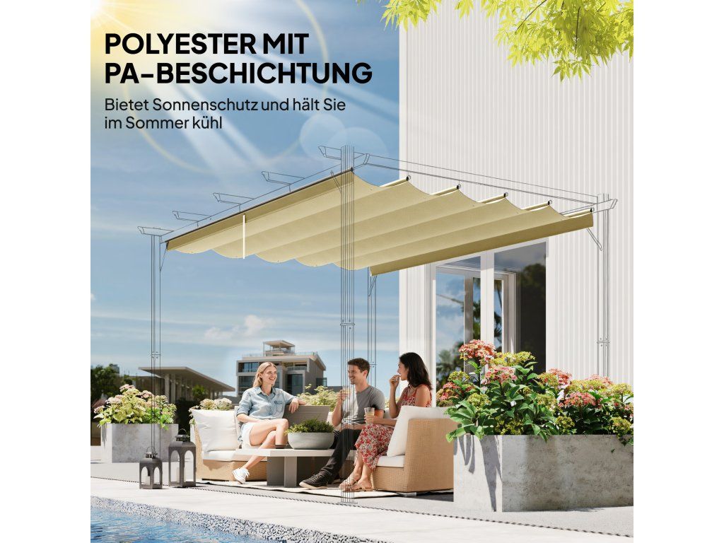 Vdechněte svému altánu nový život s naší vysoce kvalitní náhradní stříškou na pergoly! Místo vyhození pergoly ji proměňte během chvilky ve stylový ústřední bod. Tato stříška je ideální pro altány o rozměrech 3 x 3 m a pergoly se zatahovací střechou, jako jsou modely 84C-054GY a 84C-054BK. Instalace je hračka – stačí zkontrolovat kompatibilitu, nasadit novou stříšku a můžete si znovu užívat stinné hodiny venku.