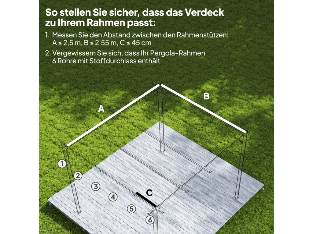 ✔ Tato stříška na pergolu má kapsy pouze pro šest tyčí.