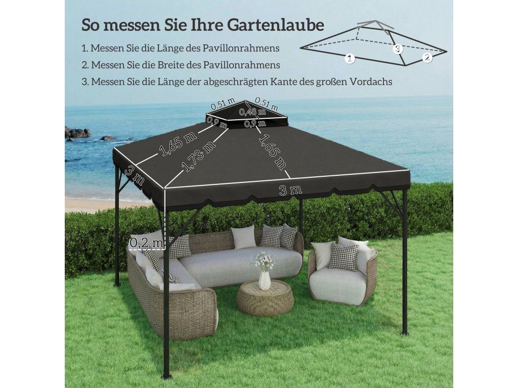 Náhradní střecha altánu: Tato náhradní střecha pro altán 3 x 3 m s dvojitou střechou okamžitě vylepší váš venkovní prostor. Před nákupem zkontrolujte rozměry a model, abyste si mohli vybrat perfektní střechu.