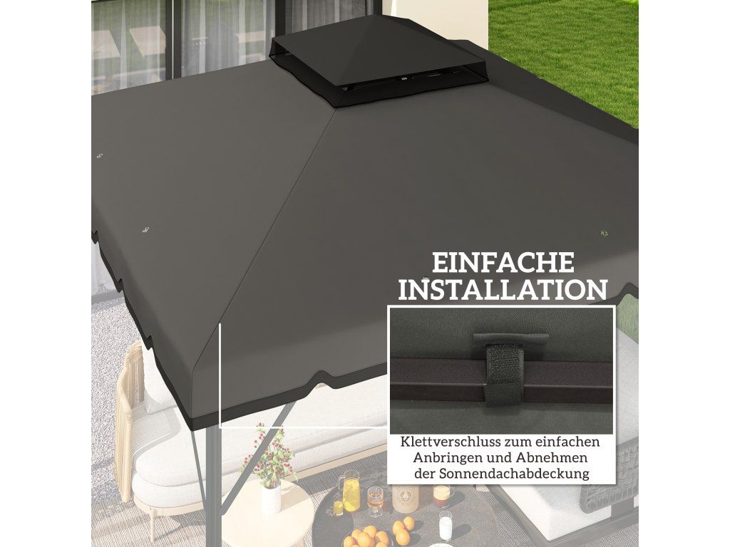 Opotřebovaná náhradní stříška může ubírat na pohodlí vašeho venkovního prostoru a vystavit rodinná setkání ostrému slunci. Osvěžte své zařízení touto náhradní stříškou, která je určena pro altány o rozměrech 3 x 3 m – před nákupem si prosím ověřte kompatibilitu. Stylová dvoubarevná látka s ochranou UPF 30+ vytváří chladnější a pohodlnější prostředí, přináší svěží stín a čistý, moderní vzhled vaší terasy pro uvolněné venkovní bydlení.