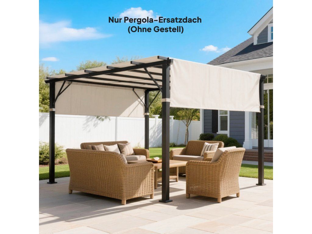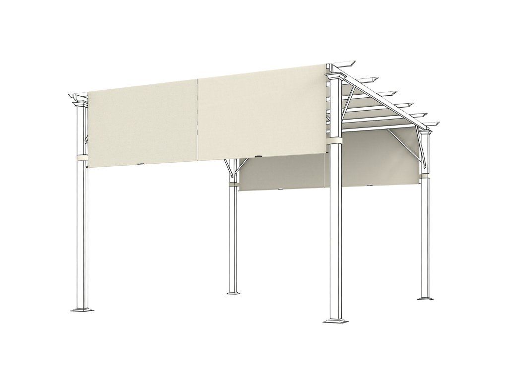 Dodá vaší pergole o rozměrech 3 x 3 m svěží nový vzhled s touto sadou dvou náhradních střech na pergolu. Panely jsou vyrobeny z odolné polyesterové tkaniny o gramáži 180 g/m² a díky PA vrstvě jsou odolné vůči UV záření. Zatížené tyče jednoduše vložte do konců panelů a připevněte je k rámu pergoly pomocí popruhů (tyče nejsou součástí dodávky).