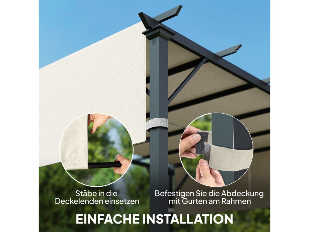 Snadná instalace: Rychlá a snadná – jednoduše ji umístěte na stávající rám a zajistěte popruhy. Instalace náhradní střechy pergoly trvá jen několik minut.