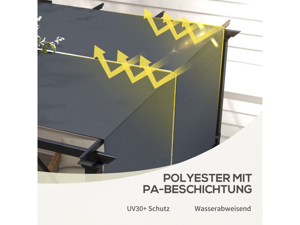 ✔ Látka s PA povlakem náhradní střechy pergoly nabízí ochranu UV30+.