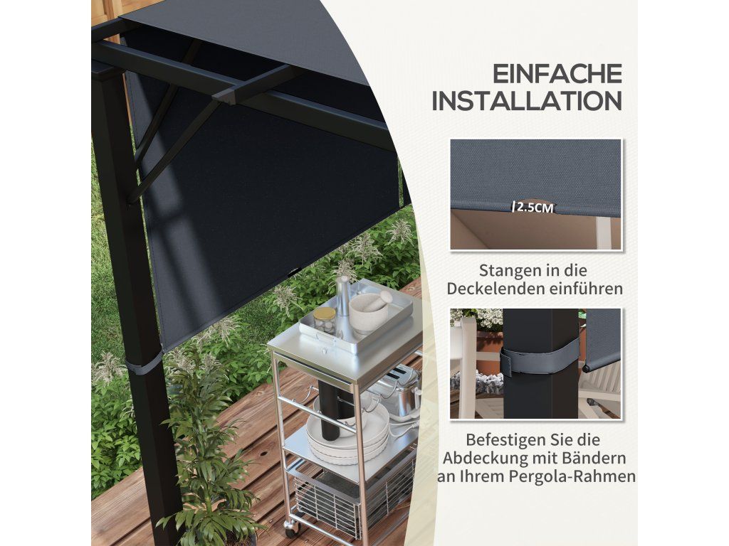 Snadná instalace: Rychlá a snadná – jednoduše ji umístěte na stávající rám a zajistěte popruhy. Instalace náhradní střechy pergoly trvá jen několik minut.