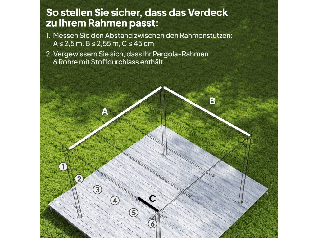 ✔ Tato stříška na pergolu má kapsy pouze pro šest tyčí.