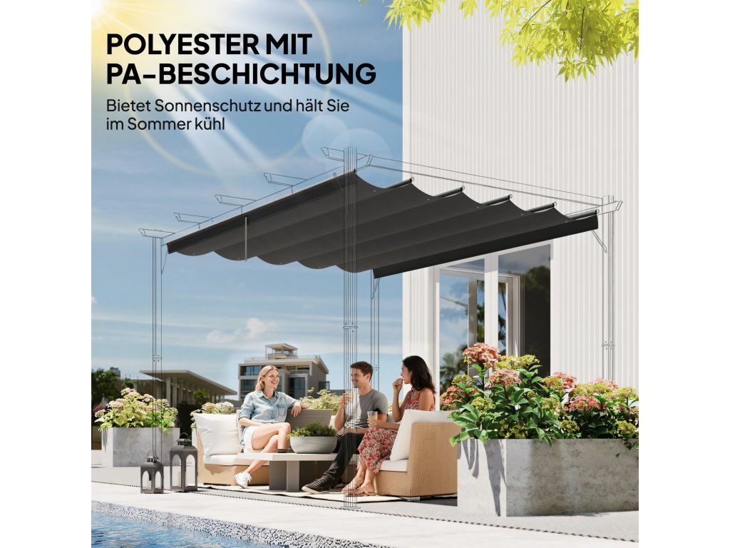 Dokonalý odvod dešťové vody: Tato přizpůsobivá náhradní stříška k pergole má 10 otvorů, které účinně odvádějí přebytečnou vodu a zabraňují hromadění a nadměrnému namáhání.