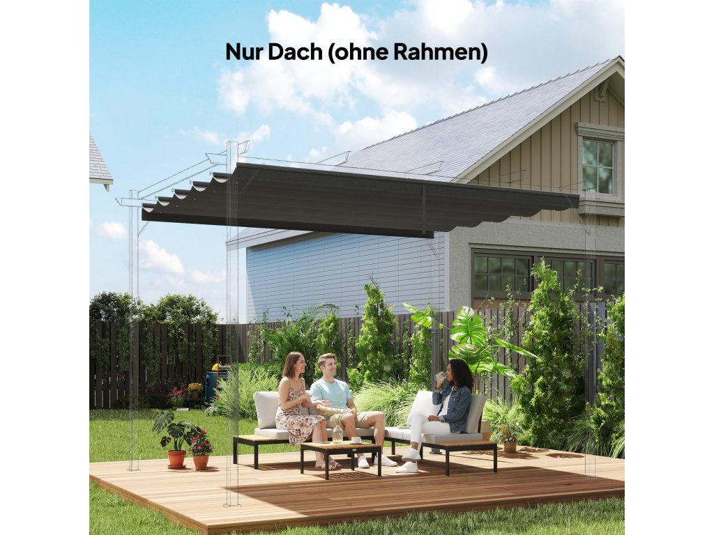 Náhradní stříška k altánům: Náhradní stříška pro altány 4 x 3 m (SKU: 84C-055BK, 84C-055BN). Cenově dostupný způsob, jak obnovit stříšku k altánu bez demontáže rámu. Před nákupem zkontrolujte velikost a model vašeho altánu. Tato stříška na pergolu má kapsy pouze pro šest tyčí.