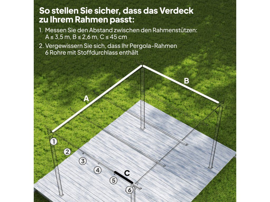 ✔ Tato stříška na pergolu má kapsy pouze pro šest tyčí.